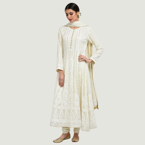 The story of Chikankari begins in the Mughal era, when Empress Nur Jahan introduced this refined Persian embroidery to India. Over time, the art found its eternal home in Lucknow, where local artisans added Indian motifs, intricate patterns, and a softness that became the city’s signature.